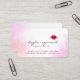 Stylish and feminine contact-card for a makeup artist with fields for name, profession and address, and with the graphic image of small red lips on a pale pink watercolor background... to make her great first impression