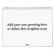 Create your own personalised calendar by uploading your own photos or art. For the cover as well as each month's photo area, simply replace the grey template with your own photo or artwork. Please note that there is also room for a custom message on the back of the calendar. **Personalise or delete that area prior to purchase **