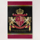Create your very own aristocratic Coat of Arms, Emblem, Insignia or Family Crest with this beautiful, classic escutcheon or shield design. Crimson red patterns decorate a shield topped with golden crown and flanked by mediaeval heraldic lion or griffin. A matching top banner holds your custom wedding date / birth date / slogan or battle cry. The shield has space for your monogram initials. Bottom banner carries your family name. There is also space below for your favourite quote, motto or message. Replace the sample text with your own for a personalised gift. A gender neutral design that will work for families, groups, couples or individuals. Makes a wonderful gift for Wedding, Anniversary, Birthday, Retirement, Promotion, Father’s Day, Bachelor Party, Wedding Shower, Graduation, International Heraldry Day, Mediaeval or Fantasy-themed parties and other special occasions.