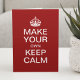 A template greeting card that you can use to easily make your own Keep Calm and Carry On Parody. All text can be changed, re-sized or deleted. The crown can also be edited. Shown with a red background. This can be changed to any colour you like by pressing the 'customise it' button. Allows you to make a completely customised card. The inside of the card has been left blank for you to add your own message.