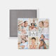 Personalised Initial Name Monogram Photo Collage Square Magnet. Add a personal and stylish touch to your fridge or any magnetic surface with this custom square magnet, featuring the design printed on one side. The layout includes a grey box in the centre with a crisp white initial and a black script name for a timeless monogram look. Surrounding the monogram are six customisable photo spaces—perfect for showcasing your favourite moments with family, friends, pets, or special memories. All colours, including the grey box, white initial, and black script name, can be changed to match your style. A thoughtful and decorative gift for birthdays, Mother’s Day, or any special occasion, this photo collage magnet blends sentiment and style in a compact and practical keepsake.