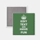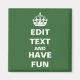 Edit text to create your own "Keep Calm and Carry On" parody magnet. Click "Customise It" then click "Edit" to change the background to any colour!