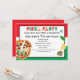 Make your own pizza birthday party. Celebrate and make pizza invitation has a red, white, and green background with a white centre where you personalise with your party information. There's a pizza pie in the corner.