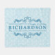 Make your own elegant, vintage personalised monogram with this custom design containing ocean blue ornaments over a sky blue antique damask patterned background. Replace the sample text with your own. The divider lines are fully adjustable to fit your text: use the underbar key to lengthen, or the backspace key to shorten. Both text and dividers are aligned accordingly so feel free to add as much or as little text as you like. Perfect for updating your look for Spring and Summer. Makes a wonderful gift for Wedding, Anniversary, housewarming or hostess, baby shower, birthday, retirement and many other special occasions. Please don’t hesitate to contact me if you need help with customisation!