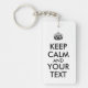 Make your own keep calm design on this customisable acrylic keychain. It has the crown logo in black and says Keep Calm and Your Text.