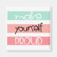 Pastel palette rectangle spread with your very decorative cartoon font on a quote "make yourself proud". Check our store for more items from our lovely quote collection and give yourself a treat.