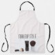 Apron suitable for a makeup artist to display your business name to wear when visiting clients or in your salon. Modern black and white makeup brushes theme. Text is fully customisable to include your business name.