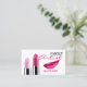 Makeup artist business card design with shiny pink lipsticks and ruby pink female lips over white background. This stylish profile card is perfect for beauticians, cosmetologists, hair and makeup beauty salons and other similar professions. If you need any help with this design, feel free to contact me.