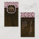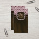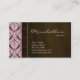 Cosmetology Business Card for nail or hair salon or Spa with pretty floral / flower damask pattern in pink and brown and chocolate like background with monogram frame. Great for any avon or mary kay rep.