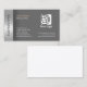 This makeup artist business card has an elegant chrome grey border on the left, lying beneath your business name so that it stand out. The border casts a faint shadow towards the right, creating a nice effect, while the rest of your details - name, title, contact and logo appear on the main body over a grey brown background. Customise this card immediately with your name and details.