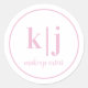 Makeup Artist Custom Monogram Business Pink white Classic Round Sticker