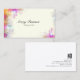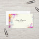 This elegantly beautiful makeup artist business card features floral designs in fushcia, pink and yellow hues on the top left and lower right corners of the card. An off-white background brings out your name and title, your name in crimson, while your title appears in thin, black letters. Designed for beauty, fashion, ladies, women, artistic, designer, fine themes.