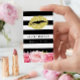 Make a great impression with this stylish "Gold Lips Modern Floral Black White Stripes" Business Card template. Create yours today!