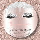 pastel pink blush faux foil dripping glitter and a metallic Rose Quartz simulated holographic gradient set the tone for this customisable thank you branded business mini card template, featuring eyelids depicted to be covered entirely with muted soft dusty rose coloured shimmering glitter eyeshadow.