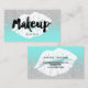 A modern, stylish makeup artist business card with modern hand lettering style brush typography in black on a faux silver glitter ombre and teal ocean with white lips. If you need any customisation, don't hesitate in contacting me