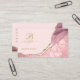A unique version of an abstract pink and gold foil agate geode makeup artist business card featuring an elegant script initial and script signature. Unique, modern and stylish.