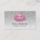 Makeup Artist Pink Lips Modern Silver Glitter Appointment Cards.
