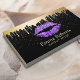 Makeup Artist Purple Lips Gold Drips Modern Black Business Cards.