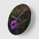 Makeup Artist Purple Lips with Gold Confetti Round Clock