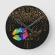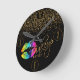 Makeup Artist Rainbow Lips and Gold Glitter Round Clock