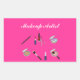 These large rectangle stickers have a design of various makeup items like eye shadow, lip stick, face powder, blush and brushes. "Makeup Artist" is in white script. This is a great promotional product to promote your skills and business. This product makes a great envelope seal too. This promotional product can be personalised with your name, phone, or email address. This design can be purchased as-is or you can use it as a template for you to make your own unique promotional design. Just upload your own pictures or graphics into the template and purchase. This design can be customised for makeup parties too.
