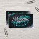 Makeup Artist Teal Silver Drips Trendy Glitter Business Card