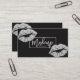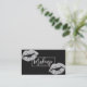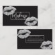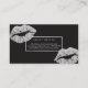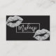 An elegant modern, stylish and simple makeup artist business card with elegant script hand lettering style typography with faux silver frame and lips on a black customisable background. A simple and professional design