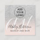 An elegant modern double letters monogram square business card , stylish makeup artist business card with elegant modern simple hand lettering style typography in white on a faux silver glitter and pastel blush pink trendy and elegant background. all text is customizable, add your social media. add your logo.