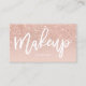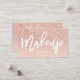 An elegant modern, stylish makeup artist gift certificate business card with elegant script hand lettering style typography in white on a faux rose gold glitter and pastel blush pink trendy and elegant background. If you need any customisation, don't hesitate in contacting me