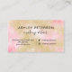 An elegant modern, stylish makeup artist business card with elegant modern simple hand lettering style typography in black on a faux gold glitter dust andpink watercolor trendy and elegant background. all text is customisable, add your social media.