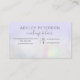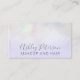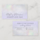 An elegant modern, stylish makeup artist business card with elegant modern simple hand lettering style typography on a pearl nacre iridescent holographic and pastel purple lavender trendy and elegant background. all text is customisable, add your social media.