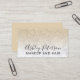 An elegant modern, stylish makeup artist business card with elegant modern simple hand lettering style typography in white on a faux champagne glitter and white marble trendy and elegant background. all text is customisable, add your social media.