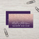 An elegant modern, stylish makeup artist business card with elegant modern simple hand lettering style typography in white on a faux rose gold glitter and purple grape trendy and elegant background. all text is customisable, add your social media.