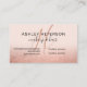 An elegant modern monogram , stylish makeup artist business card with elegant modern simple hand lettering style typography in white on a faux rose gold foil metallic and blush pink trendy and elegant background. all text is customizable, add your social media.