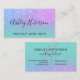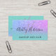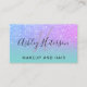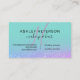 An elegant modern monogram , stylish makeup artist business card with elegant modern simple hand lettering style typography in white on a faux purple pink ombre glitter and turquoise trendy and elegant background. all text is customisable, add your social media.