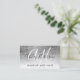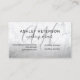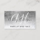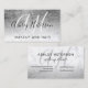 An elegant modern monogrammed double letters , stylish makeup artist business card with elegant modern simple hand lettering style typography in white on a faux silver foil metallic and white marble trendy and elegant background. all text is customisable, add your social media.
