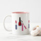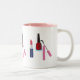 This ceramic coffee mug has various makeup items lip lipstick, mascara, and nail polish. This is a perfect design to promote your cosmetology business, personal stylist business, or independent distributor for cosmetics. This design can be personalised with your business name or customised with your own unique message, phone number or email. This design can be purchased as-is or you can use it as a template to make your own unique business design. This coffee mug makes a great gift for fashion Divas too!