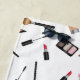 Destei's illustrated pattern of various kind of makeup products. These makeup products include palettes, powder with mirror, makeup brushes, lipstick, lip gloss, foundation and mascara. There is also a personalizable text area for a name.