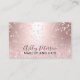 An elegant modern, stylish makeup artist business card with elegant modern sparkly rose gold glitter confetti and rose gold glitter ombre gradient with rose gold metallic texture and a modern typography, add your social media.