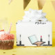 This wrapping paper features Destei's illustration of a makeup set. The makeup set includes a black mascara, red lipstick, a makeup brush and a powder with a mirror. Under the image there is a personalizable text area for a name.
