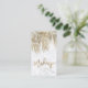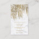 An elegant modern, stylish makeup artist business card with elegant script hand lettering style typography with gold frame on a faux gold palm tree leaf on white marble.