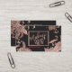 An elegant modern, stylish makeup artist business card with elegant script hand lettering style typography on a dark grey background with trendy hand drawn floral elements with faux rose gold