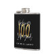 The flask itself is fine. It’s a cheap flask, obviously bought in bulk, however am prepared to overlook that. Given that it is a personalized item, I would have liked to have seen gift boxing instead of the generic packaging. Terrible printing, and/or quality. It’s a cheap, tacky vinyl. It is not cut straight and is also applied in a way that it is overhanging the bottom, causing the glue to catch on items and it will eventually roll and tear, damaging the wrap.