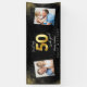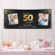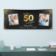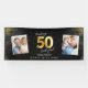 Black and gold modern script stylish multi photo 50th birthday party banner design. Modern gold effect script text.