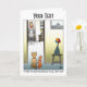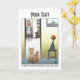 A card with a cute and funny cartoon about a cat telling a dog to make his owner beg for a change. The image, background and text can be personalised. Original artwork by DB Cartoons.