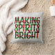 Add some cheer to your home decor this holiday season with this making spirits bright Christmas buffalo plaid throw pillow with a white bokeh background!