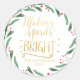 Making Spirits Bright Gold | Holly Leaves Wreath Classic Round Sticker