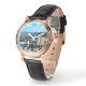 I loved the ability of designing the watch face, I chose the men’s style as I like a “big watch look”, the leather strap is good quality. Easy to read watch with illuminated hands, great for 24/7 use. I am very pleased with the end result of my design. I have no hesitation in recommending the individualisation of an item. The customisation tools are easy to utilise, you won’t be disappointed. Definitely 5 stars