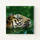 Stunning headshot of an Malayan tiger swimming in emerald water.