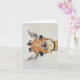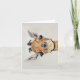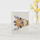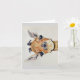 Image on greeting card of head of a baby giraffe in colourful watercolor. Blank interior for your message.
